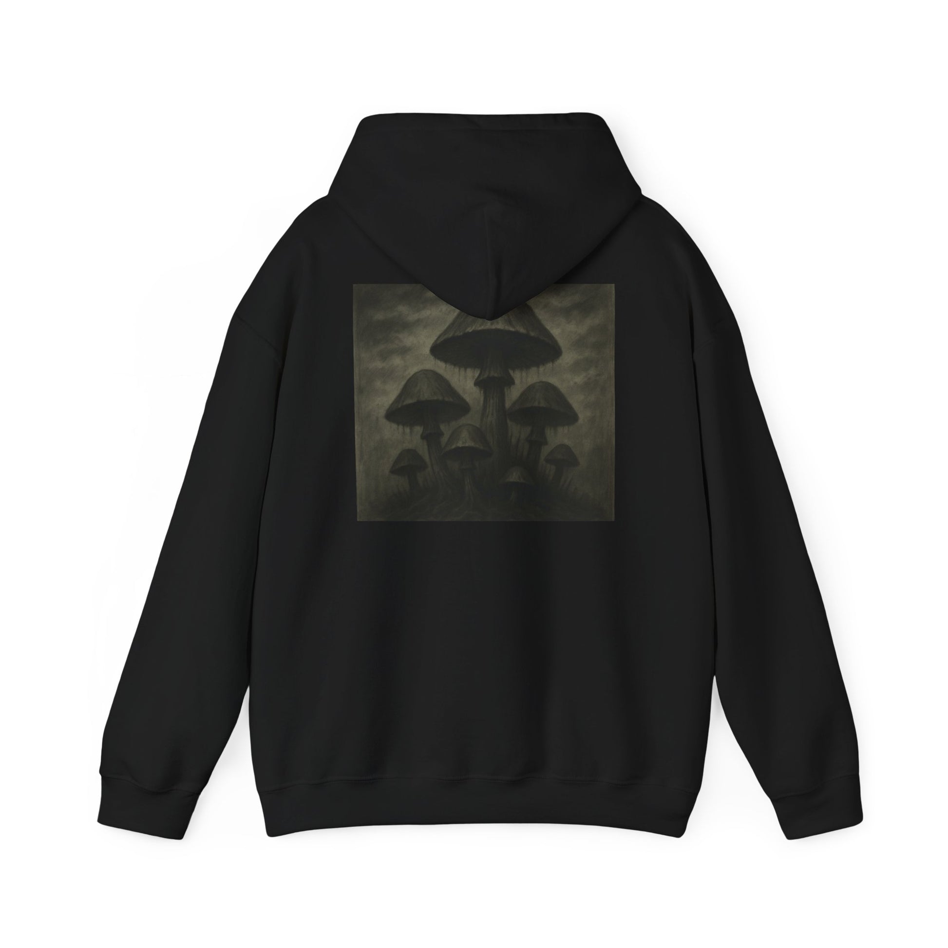 Embrace the dark and mysterious vibe with our Gloomy Mushrooms hoodie, perfect for those who love a touch of edgy and unique style. This cozy hoodie with spacious pockets and a drawstring hood is ideal for chilly days and casual outings. A great addition to your fall and winter wardrobe, this hoodie is perfect for adults looking for a statement piece.