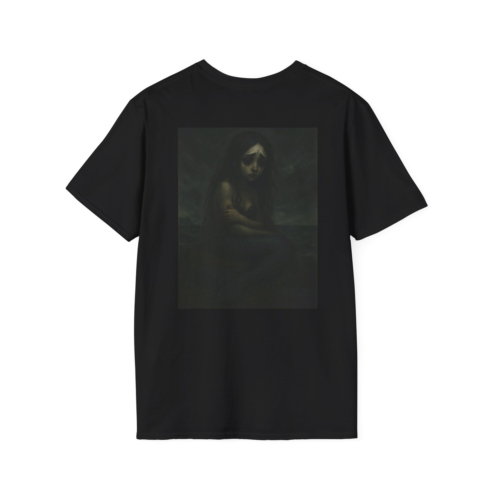 A sad mermaid design printed on a high-quality unisex softstyle t-shirt made from 100% ring-spun cotton. The lightweight fabric and classic fit with a crew neckline provide versatile style for any occasion. Perfect for adults looking for a comfortable and durable t-shirt with a unique design.
